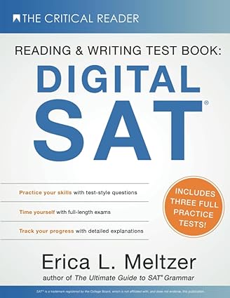 This book contains three full-length practice exams in digital SAT® format: two modules per exam, each with 27 reading and writing questions. Includes detailed explanations designed to reinforce key concepts as well as tips and strategies for identifying important information and working through questions more efficiently. Although this book can be used independently to supplement official College Board practice exams, it is also intended to reinforce the material presented in The Ultimate Guide to SAT® Grammar, 6th Edition, and The Critical Reader: The Complete Guide to SAT® Reading, 5th Edition.