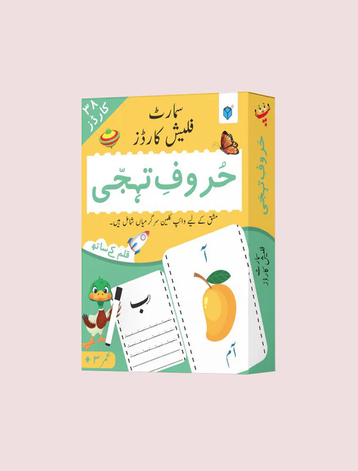 Smart Flash Cards: Huroof e Tahajji by Shama Zain is a beautifully designed Urdu learning flash card set created to help children recognize and memorize Urdu alphabets (حروفِ تہجی) in a fun and engaging way.